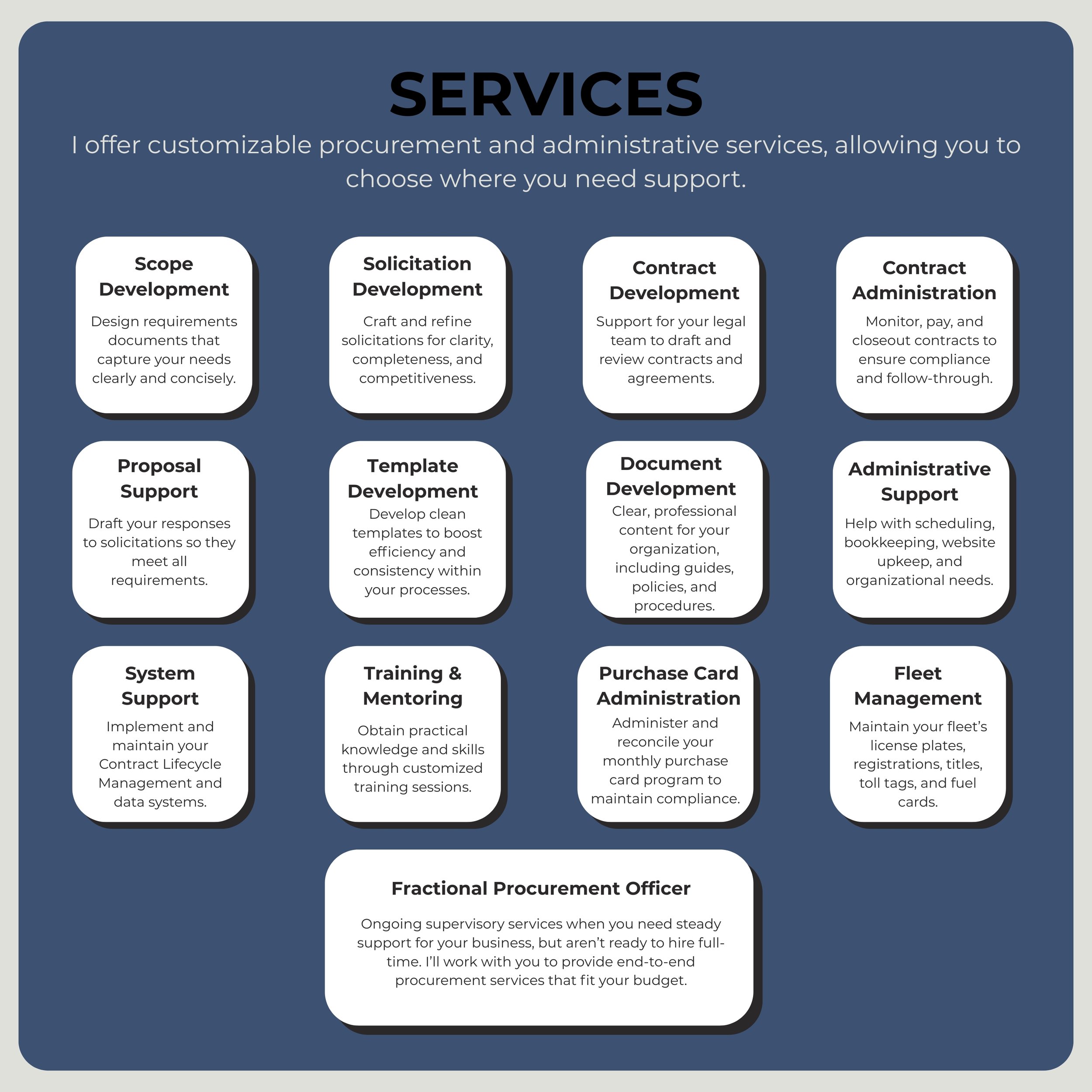 No matter who you do business with, there will always be policies to follow and terms to negotiate. This is where a Procurement professional can provide guidance to ensure your business is aware of and/or meeting third-party requirements.